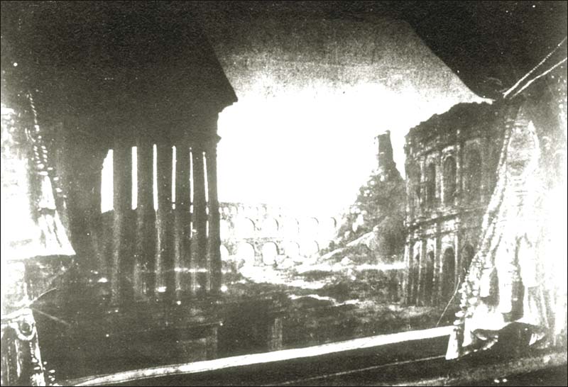 Les premiers décors peints par Protain étaient : un « palais », un « temple », et un « enfer ».