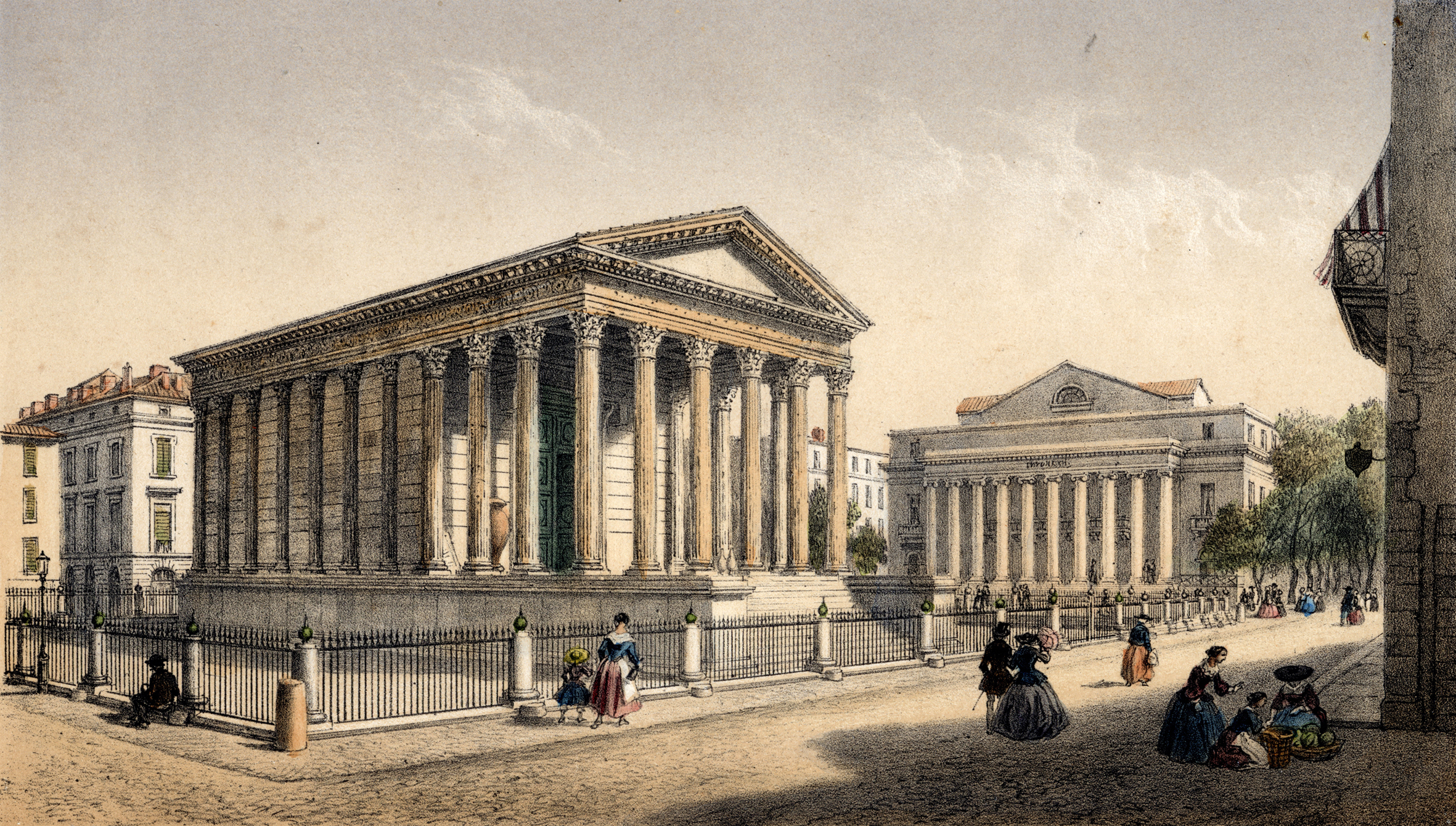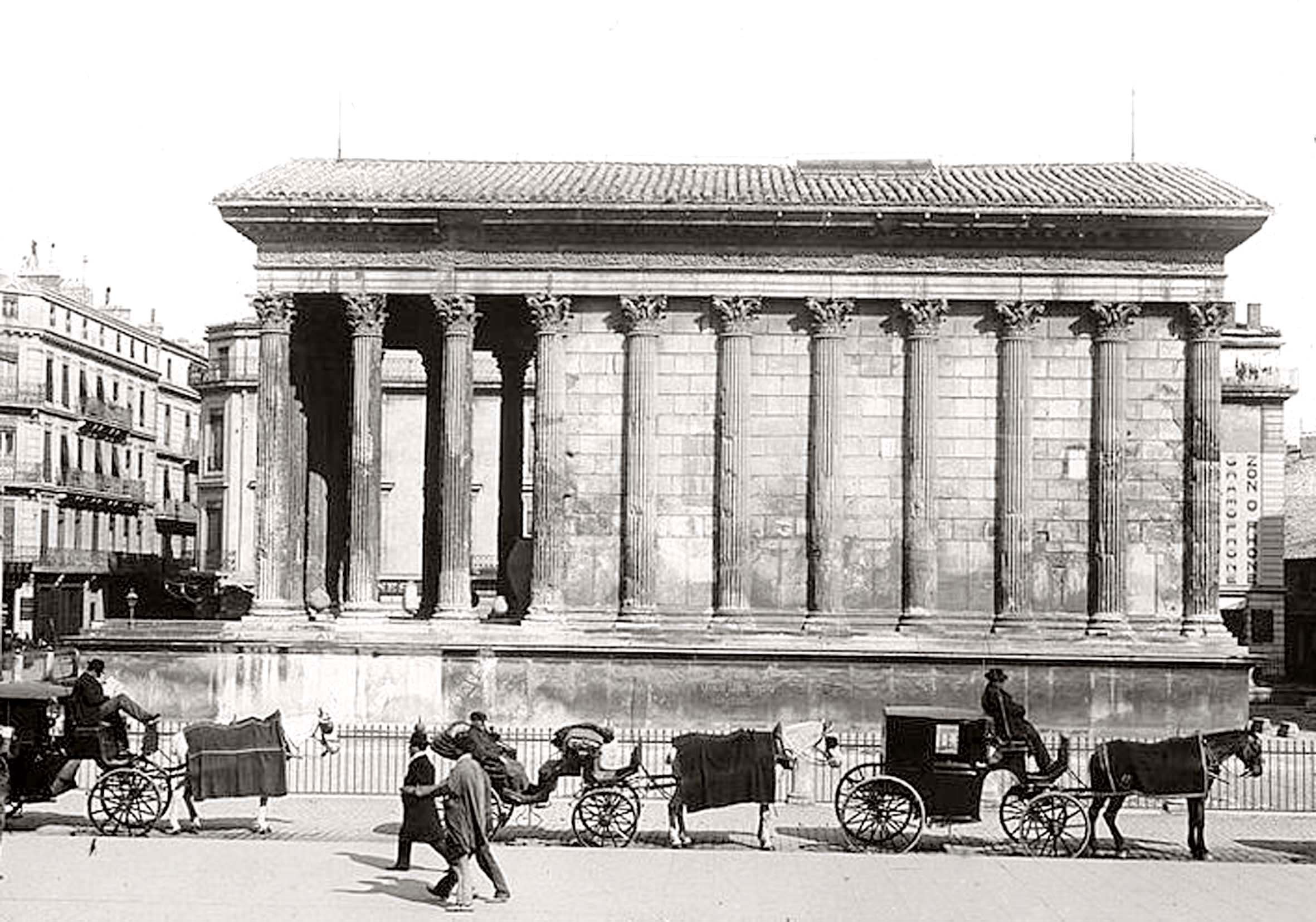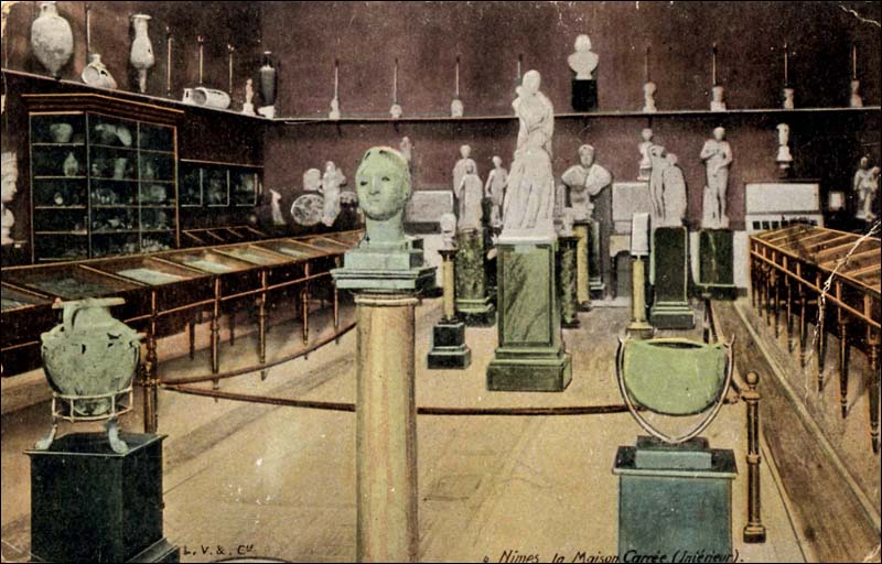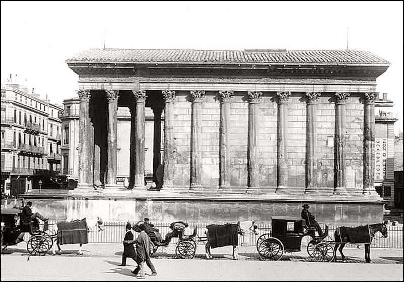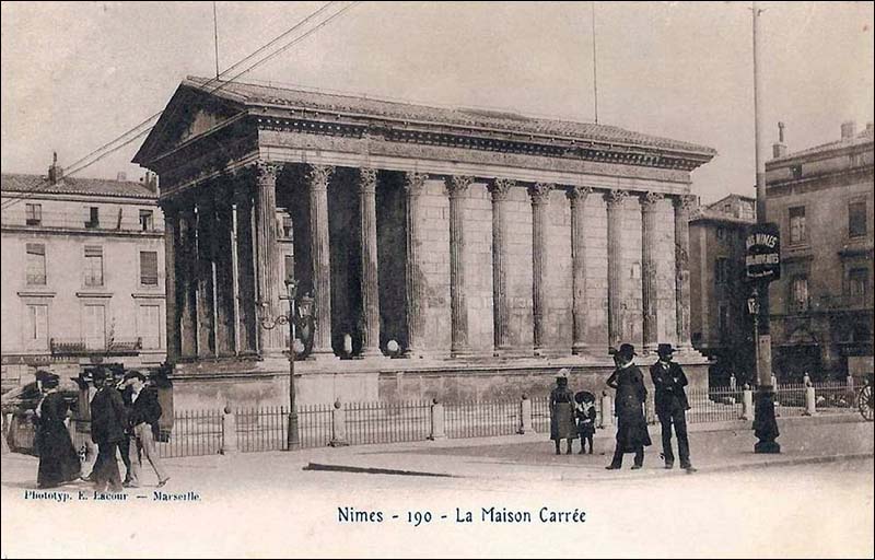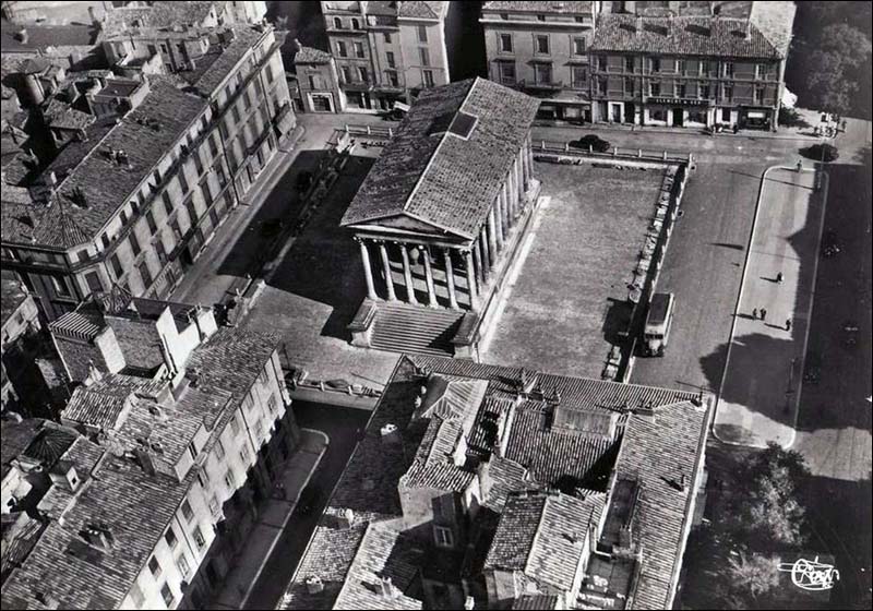 06 - Maison Carrée à Nimes par Asselineau dans "La France de nos jours". Lithographie en couleurs. 1860. Cette jolie lithographie est rendue intéressante par l'animation qui règne autour de la Maison Carrée. Noter l'apparition du lampadaire. Musée du Vieux-Nîmes. 07 - Maison Carrée, Nîmes, par A. Jouvin, litographie Dhombres à Nîmes, publiée par B. Garve. Le pittoresque et le mouvement dominant ici, dans cette présentation du monument. Musée du Vieux-Nîmes. 08 - Nîmes, Maison Carrée n° 31 par Chapuy et Salathée à Paris, chez Rittner et Goupil. Nous nous rapprochons d'une Maison Carrée disposée latéralement, permettant de voir, de face le théâtre et le Perron de la maison au nord du monument. Musée du Vieux Nîmes. 09 - Vue de la Maison Carrée et du Théâtre 243, par Deroy, litho de Becquet frères dans "La France en miniature 1860", lithographie en couleurs et en bistre ; parues ici en album: "Souvenir de Nîmes". La Maison Carrée est associée au théâtre, mais beaucoup de détails nous détournent d'elle : le balcon de la maison, au Nord, avec l'enseigne en forme d'écu, les personnages qui se dirigent vers le théâtre... Musée du Vieux-Nîmes. 10 - Temple de Nismes, connu sous le nom de Maison Carrée, P1. LV par Baltard et Bance. (Laborde). C'est une vue de face du monument ruiné avec à l'est, les maisons en saillie, à l'ouest l'église St-Paul (ancienne église des Récollets autrefois, hors des remparts). Noter l'attitude et l'habillement des personnages mi-romains, mi-bergers. Musée du Vieux-Nîmes. 11 - Maison Carrée à Nîmes - Gard . tome III t1. par F.A. Parnot et Lhuiltier, vers 1850. La foire, et tous ses divertissements est ici l'événement essentiel, bien que le monument, vu d'assez près, domine par sa masse et son élégance. Collection Gérard Taillefer. 12 - Représentation de la Maison Carrée vers 1860. 13 - Carte postale de la Maison Carrée début XXe siècle. 14 - Voitures de place stationnées devant la Maison Carrée en 1912 (taxis hippomobiles). Les autorisations étaient allouées par trimestre, par la commission des finances moyennant une redevance de 18 fr par trimestre, du 1er avril au 30 septembre et de 12 fr par trimestre du 1er octobre au 31 mars. 15 - Carte postale ancienne. Musée de la Maison Carrée début des années 1880. Collection Gérard Taillefer. ![]() Ce document n'est pas disponible en téléchargement 16 - Carte postale - Photo aérienne début années 1950. Ce document n'est pas libre de droit. 17 - Première maquette de la Maison-Carré, réalisée en liège par Auguste Pelet. Elle a figuré à l'exposition de Paris en 1839. Musée archéologique de Nîmes. Photo Deyan Stokic. 18 - Inauguration des travaux de la Maison carrée du 12 février 2011. Spectacle d'images réalisé par la société "Cosmo AV Sarl" Photo Georges Mathon 19 - Musée de la Maison Carrée vers 1900. Carte postale colorisée, collection Gérard Taillefer. 20 - Inauguration des travaux de la Maison carrée du 12 février 2011. Spectacle d'images réalisé par la société "Cosmo AV Sarl" Photo Georges Mathon 21 - Nismes, intérieur du Musée. Languedoc P1. 266 par le Cte de Turpin de Crissé (1835), litho. de Thierry frères (Taylor et Nodier). C'est la seule représentation du musée de la Maison Carrée que nous connaissions avant celles données par la photographie à la fin du XIXe siècle. C'est un musée de peinture et d'archéologie, et l'on retrouve de nombreuses œuvres actuellement conservées dans les divers musées de la Ville : noter l'admiration du visiteur en découvrant le musée. Musée du Vieux-Nîmes. 22 - Inauguration des travaux de la Maison carrée du 12 février 2011. Spectacle d'images réalisé par la société "Cosmo AV Sarl" Projection de la lithographie de Thierry frères, n°21 dans ce catalogue. Photo Georges Mathon 23 - Un siècle sépare ces deux photos. Cliché du haut (musée du vieux Nîmes), 1911 colorisé et cliché du bas 2011. (Georges Mathon) 24 - Le Forum gallo-romain de Nemausus par Ferdinand Pertus Né à Nîmes en 1883, Ferdinand Pertus était le fils d'un directeur de la banque Arnaud-Gaidan. Un banquier ne pouvait considérer qu'avec méfiance l'enthousiasme du jeune peintre. Il exigea que son fils fît de solides études. Ainsi, parallèlement à son activité artistique, Ferdinand Pertus étudia le Droit et devint notaire à Marguerittes. C'est après 1920 semble-t-il que le peintre-notaire se tourna plus particulièrement vers l'enluminure et que son œuvre devint rapidement célèbre. Hubert Rouger, maire de Nîmes de 1925 à 1940, appréciait particulièrement les œuvres de Pertus. Il lui demanda une série de tableaux, traités en enluminures, qui retraceraient l'histoire des gens de Nîmes. Il s'agissait d'en décorer la salle des mariages de l'Hôtel de Ville. Pertus se transforma en historien, fouilla les archives, retrouva les vieilles rues nîmoises de chaque époque, reconstitua les évènements, les costumes... Enfin, il créa une série d'œuvres qui, de nos jours encore, frappent par leur vérité. Georges
