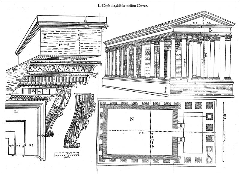 Première représentation connue de la Maison Carrée, Poldo d'Albenas 1560.