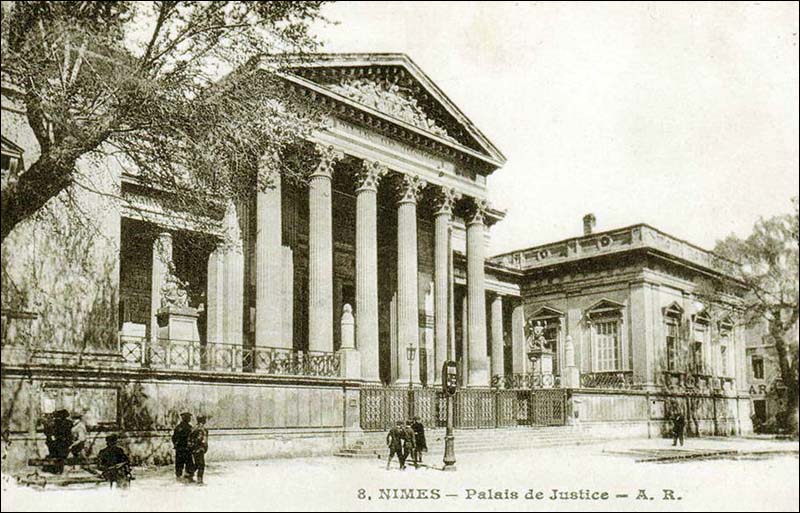 Pavillon - La Chambre du Conseil du Tribunal occupe l'angle entre les boulevards des Arènes et de l'Esplanade, au point où finissait le jardin de Courbis, sur l'emplacement du rempart, tout près de l'endroit où s'élevait la porte de Saint-Gilles. A côté, le vestiaire des juges, et, donnant sur le grand perron extérieur, la loge du concierge. (1)