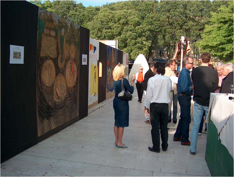 Par la suite, en 2004, Christophe Donnet que je connaissais à travers son journal "La vie des halles", m'a contacté pour participer au livre "120 ans de vie aux halles" avec Philippe Ritter et Michel Gilles. À cette occasion j'ai découvert une autre facette de Michel, personnage nîmois haut en couleur comme ses tableaux, avec des relations amicales, chaudes, sincères et désintéressées. G. M. ![]() Couverture du livre réalisée par Michel Gilles ![]() Tableau de Michel Gilles, collection Mireille Ritter ayant servi de modèle pour l'affiche de la Féria de Nîmes 2009 -oOo- Après le départ de son ami Michel