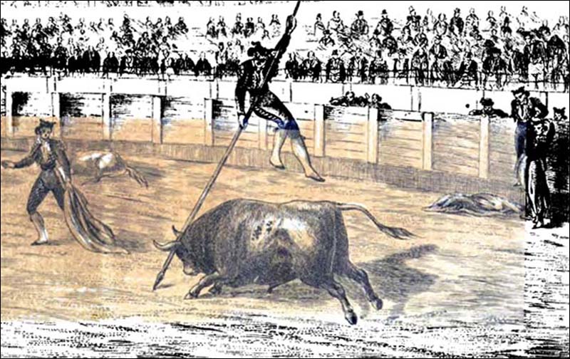 Extrait de "Les Courses de Taureaux expliquées" de Oduaga-Zolarde, 1854 (anagrame de Aguado De Lozar) ![]() Passe de pique - Entrada del Toro a la Vara Lithographie imprimerie Lamaignère, Bayonne 1854. L'introduction des courses de taureaux en France n'est pas un fait moderne. Nous avons déjà dit, dans notre Précis historique, qu'à certaines époques du moyen-âge les chevaliers, les paladins cherchèrent à propager le goût de ces spectacles chez les peuples voisins de l'Espagne. La tauromachie ne prit jamais dans, nos contrées les proportions, la popularité, l'éclat dont elle jouit dans la Péninsule; mais on remarque cependant que dans nos départements méridionaux surtout, le peuple des campagnes a conservé l'habitude de reproduire des fêtes annuelles, des jeux, des luttes qui appartiennent essentiellement à l'art de combattre et de dompter les taureaux. Le moindre village du département des Landes possède une place commune entourée de barrières et de torils, consacrée depuis un temps immémorial à des courses de vaches et de taureaux. La tradition fait remonter même cet usage bien au-delà des temps où la chevalerie aurait cherché à fonder chez nous comme en Italie, des cirques andalous ou castillans. Les courses qui se pratiquent dans la Gascogne, le Languedoc et la Provence, sont loin d'offrir l'apparat et les péripéties des combats organisés par les illustres matadores de l'Espagne. L'épée, la pique, la muleta, le poignard ne figurent pas dans ces modestes représentations, qui ont le caractère d'un jeu d'adresse et d'agilité beaucoup plus que celui d'un combat héroïque. Les animaux destinés à ces exercices .sont d'ailleurs constamment retenus par une longue corde, et le lutteur se borne à faire des écarts qui ont, d'ailleurs, un mérite spécial très remarquable comme effet de gymnastique souple et gracieuse. Quoi qu'il en soit, le principe est le même. Il s'agit de braver un danger et de jouer avec des cornes menaçantes. Cette passion du taureau, dit Théophile Gautier, est commune à tous les peuples du Midi. Les races catholiques à langues latines ont gardé cet artistique goût romain du cirque, objet d'horreur pour les races saxonnes et protestantes. ![]() Saut de Lance - Salto de la Garrocha Lithographie imprimerie Lamaignère, Bayonne 1854. Les tentatives faites dernièrement pour introduire ce genre de spectacle à Paris et en Belgique n'ont pas eu de succès. Il faut d'autant moins s'en étonner que ces essais, produits dans des conditions insuffisantes et avec des éléments très incomplets, ont, été plutôt des parodies que des imitations. À Paris surtout, les précautions prises pour ménager ce qù'on appelle la susceptibilité Française et ne pas faire couler de sang sur l'arène, l'absence des picadores, l'application de tampons aux cornes des taureaux, ont complètement changé le caractère de ce spectacle et dénaturé son effet. D'ailleurs, dans le Nord de la France comme en Belgique , si loin de l'Espagne, les taureaux, fatigués par un.long voyage, privés de l'air, de l'eau et des pâturages savoureux de leur pays natal, n'étaient plus aptes au combat. Bordeaux même, quoique plus près de la patrie des Romero et des Montes, en est encore à une trop grande distance pour que des tentatives de ce genre y puissent réussir. Mais à Bayonne, au pied des Pyrénées, sous le ciel même de l'Espagne, au milieu d'une population sympathique à ce divertissement chevaleresque, les éléments de succès étaient certains. On raconte qu'à St-Pierre-d'Irube et dans quelques autres localités du Pays Basque, il y a une quarantaine d'années, des courses étaient données et attiraient une grande foule de spectateurs. Quoique le spectacle fût dans des conditions bien inférieures aux représentations espagnoles, c'était un combat à mort et d'un caractère bien plus sévère que les courses des Landes et de Nîmes. Des courses de novillos, avec une cuadrilla espagnole dirigée par Antonio Perez (dit El Relojero), données à Saint-Esprit en 1852, attirèrent une assez grande affluence. L'espada et ses banderilleros y firent des passes fort gracieuses et obtinrent un succès réel quoique leurs représentations sans picadores fussent encore bien incomplètes. ![]() Pose de Banderillas par Demi-Tour - Banderillas a Media Vuelta Lithographie imprimerie Lamaignère, Bayonne 1854. Des représentations sérieuses du véritable combat tauromachique devaient infailliblement recevoir un accueil favorable en ces contrées, où le gout de la tauromachie, quoi qu'on en dise, a de vieilles et profondes racines dans les moeurs et dans le coeur du peuple. La première troupe espagnole en renom qui, depuis l'époque des paladins, ait figuré dans un cirque en France, est celle de Cuchares qui, en 1853, a donné trois jours de courses dans un vaste amphithéâtre provisoirement dressé sur une place de la ville de Saint-Esprit. L'entreprise fut montée par M. A. de L., qui le premier obtint du gouvernement français l'autorisation de donner ce spectacle tel qu’il est produit en Espagne, avec toute sa pompe héroïque, avec toutes ses chances terribles et ses détails imposants, depuis le salut de l'alguacil jusqu'à l'enlèvement des cadavres par les mules, depuis le jeu des banderillas jusqu'au coup de poignard du cachetero. Le privilège obtenu par le fondateur de ces courses est, dit-on, de dix années. Le début a été assez heureux pour faire présager un succès constant à l'avenir. Pour remplir plus exactement notre rôle d'historien à ce sujet, nous allons reproduire les principaux comptes rendus publiés à Bayonne et à Paris sur ces premières représentations. ![]() Coup d'Epée - Estocada Lithographie imprimerie Lamaignère, Bayonne 1854. Voici l'article du Courrier de Bayonne : PREMIÈRES